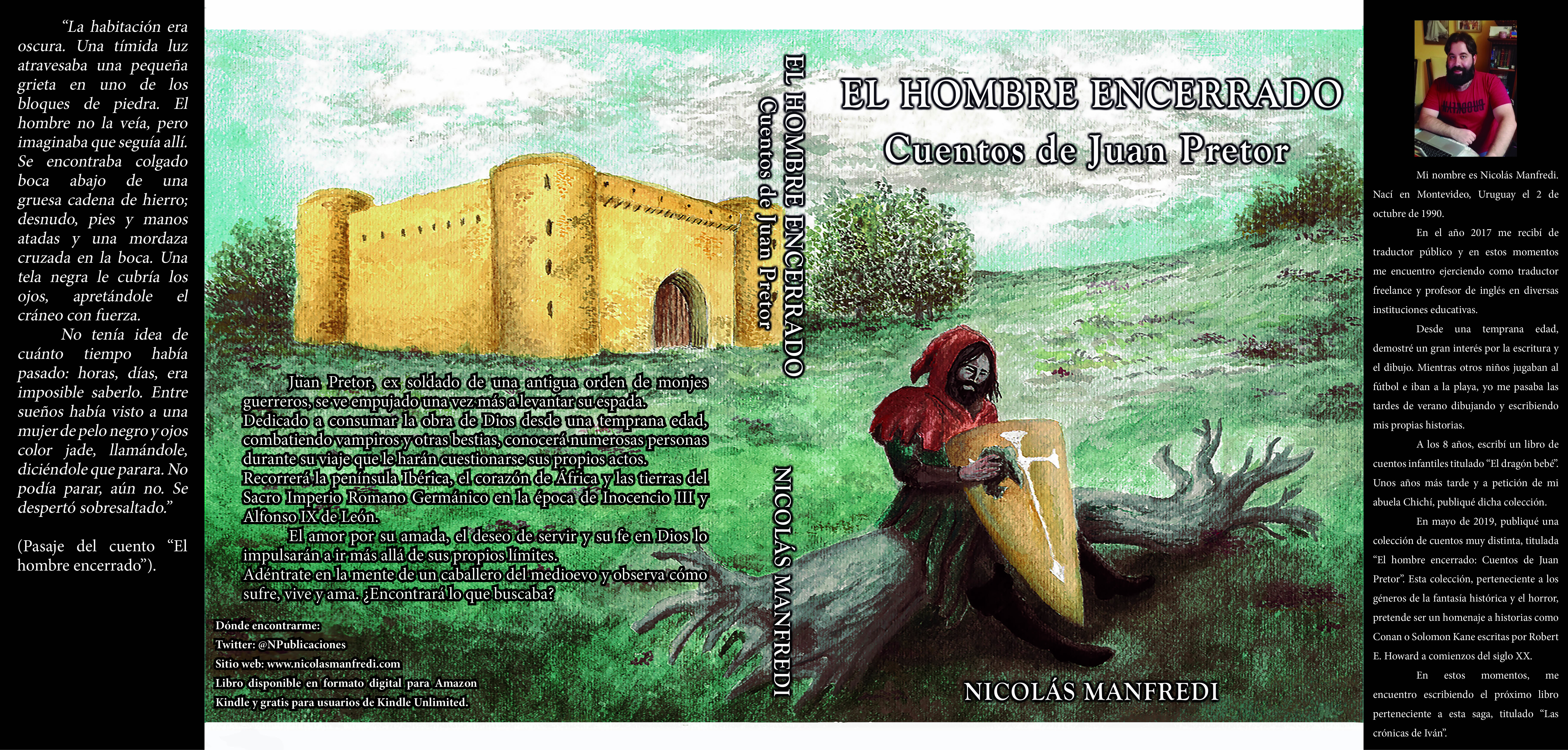 ¡Hola a todos mis lectores! El día de hoy, quiero contarles una fantástica noticia. ¡Habemus nueva tapa y contratapa de «El hombre encerrado: Cuentos de Juan Pretor». El arte, como podrán apreciar, fue hecho enteramente a mano por el fantástico dibujante Nicola Cirino (@nc.artss en Instagram, ¡les recomiendo que lo sigan!).